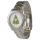 Den här kvinnans helgdag-klocka visas i ett överdimensionerat armband stil i silver-ton med en utskrift från helgdag Julgran. Anpassa den här klockan eller köp som det är.