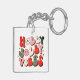 Retro Jul Holly Jolly Vibes Trendig Helgdagar Keychains har texten "Holly Jolly Vibes" i ett reflektionsskript i rött, grönt och rosa accentuerad med stjärnor och söt lycklig ansikte. Designad av ©Evco Helgdagars www.zazzle.com/store/evcoholidays