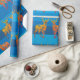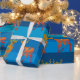 Hjort, snöflingor, blått rand som är pappert för nyår och speciell inslagning av jultid.