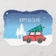 Anpassningsbarna skisserade liten röd bil med nyhackat Julgran överst.