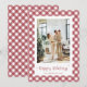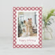 helgdagskort med rött och vitt pläterat anpassningsbar som innehåller ett rött och vitt schaktat mönster. Anpassa enkelt de här gingham-helgdagskorten med ditt foto och din familj namn.