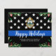 Skicka God jul hälsning till vänner, företag, medarbetare i tillsatta lagar och er gemenskap med detta unika jullkort för Thin Blue Line Police Department - American Flagga in Police flagga färg, modern black and blue with holly lövs and bär. Anpassa med polisavdelningens logotyp, meddelande och avdelning. Budgetkorten god jul måste skickas som vykort med för stor storlek, så de kan åläggas en vanlig portoavgift men behöver inte ett kuvert eller en returadressetikett. COPYRIGHT © 2020 Judy Burrows, Black Hund Art - Med alla Höger reserverade. Helgdagskort för Logotyp av budgetavdelning för Anpassningsbar