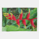 Heliconia kökshandduk. En populär tropisk blomma med livliga toner av rött, görar grön och gulnar.