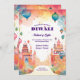 På framsidan av inbjudan finns en mjuk vattenfärgsbakgrund med mjuka tvätta av lätt färg, skapande en serene och eterisk känsla. Två vackert illustrerade hindustift står på vardera sidan av konstruktionen, inramad av känsliga, handmålade hinduiska dekorationer stil. De mjuka pastelltonerna blandas harmoniskt på den vita bakgrunden, ge inbjudan till ett mejeriskt och lugnande skum. Händelseinformationen skrivs elegant i mitten, omgiven av intrikat mönster som framkallar traditionellt hantverk. Kortets baksida fortsätter med vattenfärgstemat, som ger utrymme för anpassade och Diwali önskemål, med subtila dekorativa accenter som binder samman designen. Denna inbjudan utstrålar fred och skönhet i andlig, perfekt för att fira Diwali med ära och vördnad.