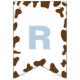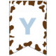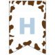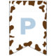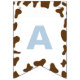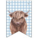 Heliga Cow! Cute Cow med brun kompress och blå plaid party-banderoll i grattis på födelsedagen.