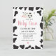 Heliga Cow! Cute Cow med kompress, rosa daisy och rosa Gingham tillbaka födelsedagsfest inbjudan.