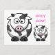 HELIGA COW Tecknad Rosa Nose Cow Funny Postcard. Visar en söt, rund, tjock, fläckig tecknad ko med stor rund ögon, roliga fötter och en rosa näsa. Och en identisk baby ko bredvid honom. Ovanför är HELIGA COW! skriven i Rosa för att matcha hans näsa. OBS! NOTE-KORT finns i butikens kortkategori.
