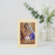 Barnet Jesus med Mary och Joseph På bord är en lampa, lite bröd, fisk, druvor och kopp på vin Tillbaka är ett tomt redo för dig att anpassa dig som ett bönekort eller för din religiösa- eller minnesceremoni