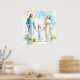 Ett känsligt porträtt i Heligans familj, med Saint Mary, Jesus och St. Joseph. De går tillsammans mot oss för att ta oss vid handen och följa med dem i fred, hopp och tro. Datorgrafik med målarfärg, vattenfärgseffekt.