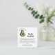 Med en förtjusande gravid avokado på framsidan och ett lekfullt avokado-mönster på baksidan, är dessa kort en inbjudan till våra gäster att bidra till vår bebis spirande bibliotek.