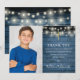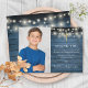Med strängljus och en elegant namnteckning på en blå rustik träpanel bakgrund. Personifiera med ditt foto och speciellt tackmeddelande för första heliga kommunion i chic bokstavering på denna stilrena design. Designad av Thisisnotme©