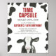 Heliga Kow Vattenfärgko och ko skriver ut första födelsedagsfesten Time Capsule-tecken.