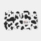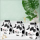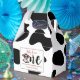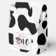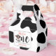 Heliga Kon ett första födelsedag svart och vitt mönster med ett namn att anpassa, tack för att du firar med oss fras, med en digitalt målad söt ko som kombinerar korall rosa, svart och vitt färg som samordnas med resten av födelsedagssviten. Designad och målad av @rodicadraws.