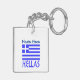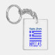 Nyckelring med den grekiska flaggan och ordet HELLAS under i blått. Flaggan visar blå och vita ränder med ett blått och vitt kors i det övre högra området. Ovanför det kan du lägga till ett namn i blå bokstäver för en personlig touch eller skapa en anpassad present. Roligt att ta med till familjesammankomster, resegrupper och dela din kärlek och stolthet över ditt arv. Roligt för att fira Oxi-dagen.