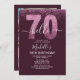 Hello 70! Invite your friends and family to celebrate the 70th birthday with this modern design. The design features a black background, the numbers thirty in faux pink glitter, with an elegant pink glitter background, elegant calligraphy script, a modern birthday template that's easy to personalize, and the option to add a photo to the reverse. Don't think about it and get yours now.