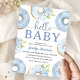 Hello Baby Blue Munkar Baby Shower Inbjudan