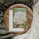 A sweet woodland baby shower design featuring a soft green banner with “Hello Baby” and a charming watercolor forest scene. Adorable woodland animals including a deer, bunny, raccoon, bird, and mushrooms create a warm storybook look with gentle rustic details. The natural greenery and neutral earth tones make this design a lovely choice for a gender-neutral baby shower or nature-inspired celebration. It has a cozy forest feel that works beautifully for parents who love woodland nursery themes and soft botanical style.
