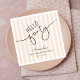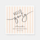 This 40th birthday party napkin showcases modern elegant script reading “Hello Forty,” complemented by a soft orange and white striped background. It's clean, refined design makes it a perfect addition to her celebration party.