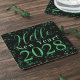 Hello New Year! New Year's Eve Green Black Sparkle Underlägg Papper Kvadrat