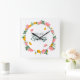 Hello Spring Floral Wreath Fyrkantig Klocka