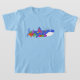 This shirt was designed by Brandon Wilkins and features a friendly, colorful whale.