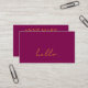 Hello Wine Pink Orange Script Typography Modern Visitkort
