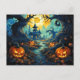 Det här vykortet för coola har ett hemsökt hus i månljuset, precis utanför skogsröjningen. Du uppmanas att justera alla tillgängliga alternativ som du vill.