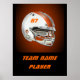 Anpassadets vita och orange fotbollshjälm. Lägg till teamets logotyp, namn, spelare namn och/eller nummer. Gör en underbar gåva till fotbollsspelare, fotbollstränare, fläkt, fantasi-ligafotbollsspelare med mera.