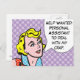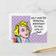 Prata om en ärlig "Help Wanted"-annons! Den här vykortsdesignen har en söt tecknad bok gal och en tal bubbla med ord, "Help Wanted: Personlig assistent för att ta hand om min skit!" Den blåögda blonden bär en röd och vit prickskjorta med en blå och vit prick. Bubbeln tecknad bok och tal ligger på en mönstrad, lavender-bakgrund. Skicka ut det här vykortet och vänta på att sökandena slår väg till dörren.