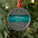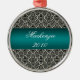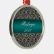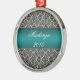 Toppen elegant Klassisk Helgdag Damask-primitiv ornament med en fuktig bakgrund och ett dynamiskt tealband för mörk. Anpassa den här snyggtens dubbla-sidiga utsmyckning genom att lägga till ett namn och det aktuella året. En stuffergåva eller julfest till älskling!