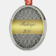Toppen elegant Klassisk Helgdag Damask-prydnadsföremål med en fuktig bakgrund och ett dynamiskt guldband. Anpassa den här snyggten genom att lägga till ett namn och det aktuella året. En stuffergåva eller julfest till älskling!