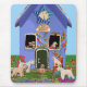Den här bilden visar vuxen mjuka jackat väktade skrämmare och vävade kvalpar hemma. Dospåsar tittar ut genom fönstret. "Mamma"-hund finns i det andra rummet, tittar också ut. På skylten på huset står det: "Hem är där hjulet är." Originalteckningar? M.Light. "Hem är där hjulet är."