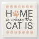 Lägg till elegant stil till din hemdekoration och skydda dina möbler med den här söta och roliga grafiska underlägg som innehåller ord "hem är där katten är" i modern manustypografi, inklusive en metallisk plåtpapp för ro i guld för "o" i "hem" och promenad i tass avtryck.