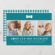 Vår hund "Home for the Helgdagars", julkort, innehåller tre kvadratiska bilder av din nya valp till med vänner och familj. Anpassa texten med anpassningsbar hälsning, efternamn eller familj, valpens namn och året. Den moderna tealblåa designen omfattar söt paw-utskrift, hund-ben och en samordnande gingham/buffalo-platta mönster på baksidan.