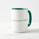 Mugg är en vibe. Njut av din favoritdryck i fridfull ensamhet. Vit, 15 uns, mugg med mörk grönt handtag och insida. Matchande grönt säger: "Jag är precis där jag vill vara. Hemma, undvika människor." En dekorativ klocka springa på baksidan av mugg för att slutföra konstruktionen. Skapat med högerna i åtanke. Annan tillgänglig färg är mörk blått, mörk röd, svart och gult/rosa. Finns även i en lämnat handversion.