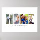 Överför fyra favoritfoton för att stava HEME och anpassa meddelandet under för att skapa ett unikt poster till ram för ditt hem.