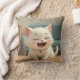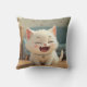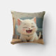 En bekväm kudde med en vit kattmålning som ler och leker söt kattmålning