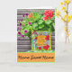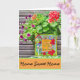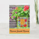 Det här kortet är designat med en liten tavla lutad mot en kruka med sommarblommor. Orden på tavlan säger "Där bekymmer smälter som citron droppar". Jag tycker att miljön gör ett perfekt Ny Hem-kort eller välkomstkort. Orden kan enkelt anpassas för olika tillfällen.