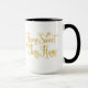 En kaffemugg med Hem Slutet Lilla Hem på sig i guld.