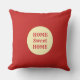 Sand beige cirkel och text: Hem Sweet Hem på maroon röd Kastkudde.
