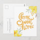 Hem Trevligt Hem Chic Gula Blommor Vacker Grattis Postkort. Du skickar detta kort för att gratulera de nya husägarna på deras nya hem, du önskar dem lycka och glädje genom att säga Hem Trevligt Hem. På baksidan av kortet kan du anpassa det med din egen text. Anpassa med din företagslogotyp också om du skickar kortet i affärssyfte. Beställ din idag!