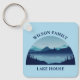 Den här coola anpassningsbar-nyckelkedjan i sjö har en serenblå flod omgiven av träd och din personlig för familjeåterförening, camping resa eller sommarsemesterbostad. Anpassa med ditt efternamn eller med andra namn-grupper.
