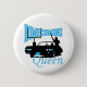En silhouette av ett flickainnehav blommar och att vinka som sitter atop baksätet av en konvertibel bil. I bakgrunden är formulera "den framtida hemkomstdrottningen",