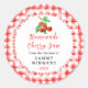Denna roliga och fantasifulla dekal har körsbär på ett vitt spetsigt lakan och en rödrutig bakgrund. Den är perfekt för att märka dina hemlagade varor. Texten kombinerar handskriven script och serif-teckensnitt för en stilren och modern look.