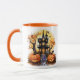 Utsidan av den här Haunted House Fransk Bulldog Witch mugg har en ljusvit bas. Mugg är perfekt för en Fransk Bulldog älskare och älskare för Halloween-säsongen.