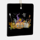 Ornament med en söt bild av ett hemsökt pumphus med en stor häxhatt på ovansidan och spöken och fladdermöss som flyger runt.