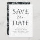 Minimalistisk och elegant sparar datumkorten med "spara datumet" i halvsvart text med små blommor. Anpassa med dina namn- och bröllop-detaljer under. Kort återgår till ett matchande blommönster i vitt på bläcksvart.