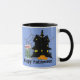 För försäljning. Spooky, hemsökt hus tittar för lite TLC. Kaffe, te och till och med hett cider smakar underbart i Halloween mugg. Den här säsong-konstruktionen har ett hemligt hus med försäljningsskylt, på gården. I bakgrunden finns ett grått-spindelnät. Samma utformning finns på båda sidor om mugg.