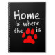 En ordlek med citatet "Hem är där hjärtat finns" har den här anteckningsboken orden "Hem är där [paw print bild] är", där bilden trycks i rött och representerar "hjärtat". Perfektens gåva till djurälskare.