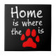 En ordlek med citatet "Hem är där hjärtat finns" har den här keramiska plattan ord "Hem är där [paw print bild] är", där bild trycks med rött som representerar "hjärtat". Perfektens gåva till djurälskare.